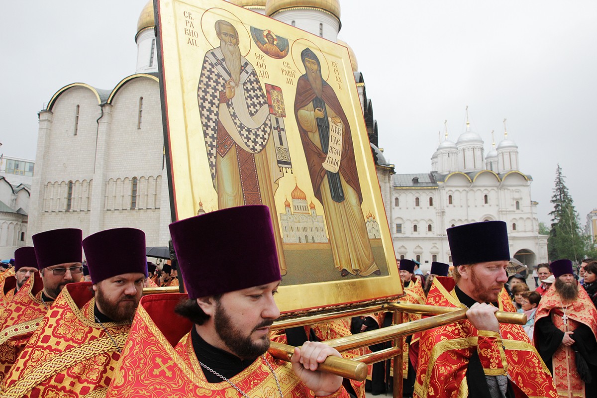 Руси Кирилл возглавили крестный ход от Успенского собора к памятнику